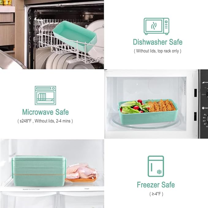 • 【Microwaveable and Dishwasher Use】 Split your food between 3 divided containers. Keep your everyday meal prep under control. Removable compartment tray reheats food safely in the microwave and cleans up easily in the dishwasher(Expect the lid). That’s why it is the best work lunch box.