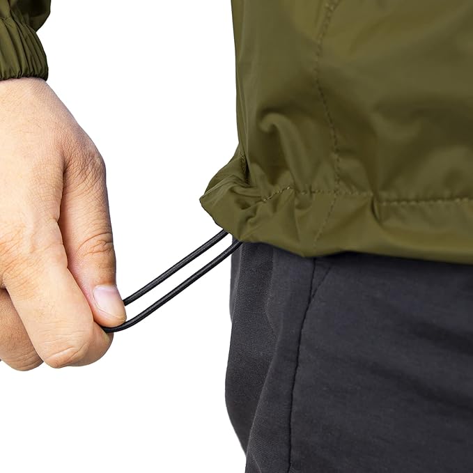 • Elastic cuffs, adjustable drawcord hood and hem elastic rope prevent rain from getting in while providing warmth