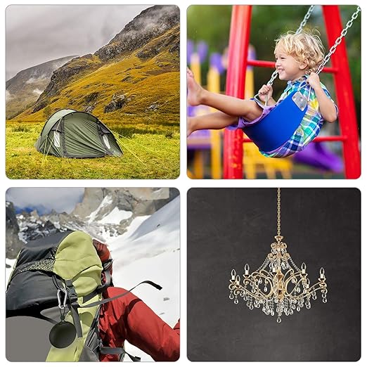 • 【Multipurpose Quick Link Clip】These are widely used for camping, hiking, diving, backpacking, fishing, boating, hanging cords, ropes, hoses, key chain, water bottles, backpack, handbag, key rings, camping gear, lights, dog leashes, pulley, rings, RV, rings, hardware, DIY accessories and indoor outdoor equipment gear