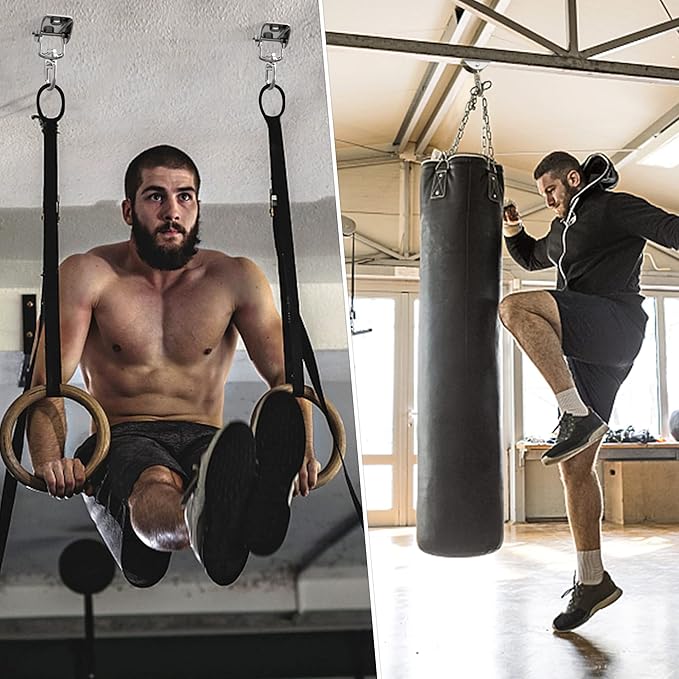 • 360°Rotable Ring & Silent Design : Our swing hangers contain Nylon Wear-Resistant Gaskets on both sides to Prevent direct Friction and Noise;360°Rotated freely, perfect for Punching Bag and some Yoga Exercise.