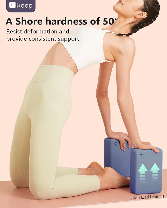 KEEP Yoga Block, High-Density EVA Foam 2 Pack Yoga Block with Non-Slip Textured Surface, Supportive, Lightweight - Ideal for Yoga, Pilates, and Stretching Exercises
