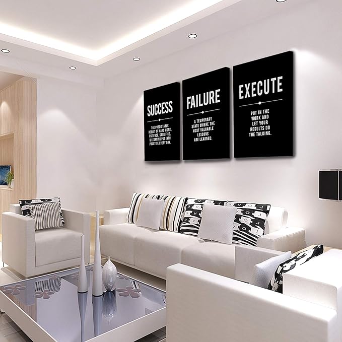 Framed Canvas Wall Art Success Quote, Office Wall Art, Black Large Poster, Positive Motivational Set of 3 Prints, Execute Failure Definition, Inspirational Print (A-3pcs,24x36inchx3pcs)