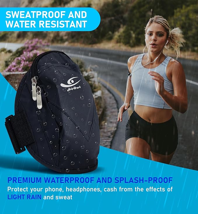 • Premium Waterproof and Sweatproof Material: Crafted with advanced waterproof and sweat-resistant materials, this armband ensures your phone and valuables stay protected from sweat, light rain, and other elements. Whether you're running, cycling, or hiking, you can focus on your workout without worrying about your gear.