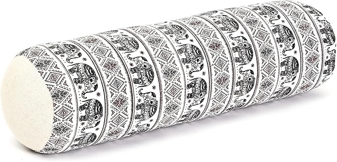 • The yoga bolster pillow measures 20 x 6 x 6 inches (WxDxH), is firm, and has a cylindrical form. Thanks to its softness and lightness, the neck roll can be stored easily and quickly
