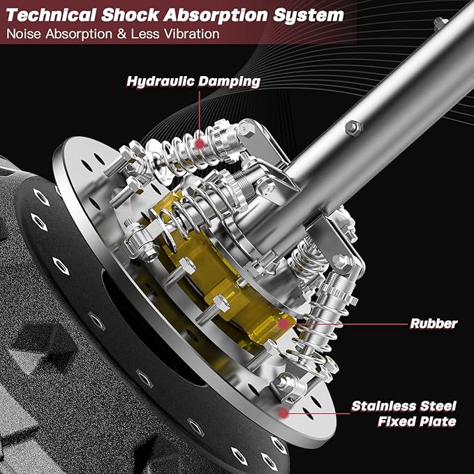 • Better Technical Shock Absorption System: 4 sets of hydraulic damping, rubber and stainless steel fixed plate work together to improve the shock relief effect again. This combination can fully break down the bounce-back force to make stress distribution very evenly, minimizing the damage to the human body to the maximum extent