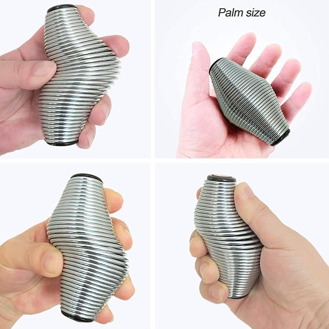 • HIGH QUALITY: This stress relief ball is made of high-quality spring steel, the chrome-plated finish treatment makes the product feel good and will not corrode the product due to sweat. Plastic covers at each end of the spring ball protect fingers from injury.