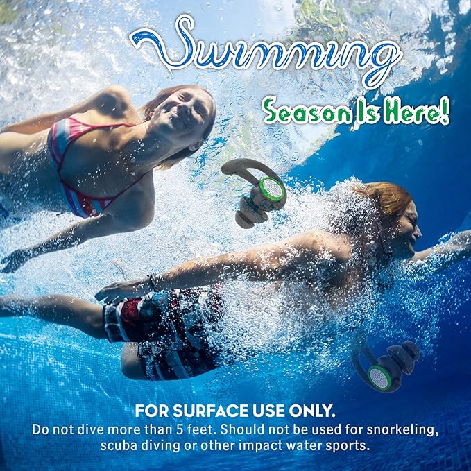 • Stylish Design: Swimmer earplugs come in three bright colors with fine craftsmanship. The green ones glow in the dark, preventing loss if dropped in water. Ideal for swimming, bathing, water skiing, canoeing, kayaking, and surfing
