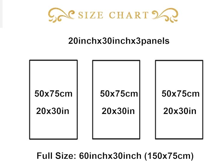 • Wall art size: 20x30inchx3pcs (50x75cmx3pcs)