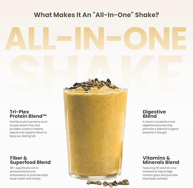 • PLANT-BASED PROTEIN FOR MUSCLE SUPPORT: Each serving of this protein meal replacement delivers 15g of pea, rice, and pumpkin protein to help support lean muscle, promote satiety, and provide lasting energy throughout your day