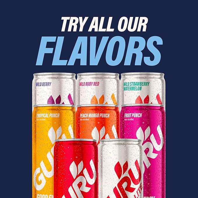 • SPREAD FEEL GOOD ENERGY: Organic energy drinks crafts with plant based ingredients. GURU is about helping you blaze new trails, reach new heights, and find your true nature. Help us share good energy, inspire communities and be a GURU to others!