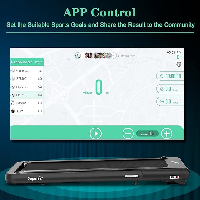 • 𝗦𝗶𝗺𝗽𝗹𝗲 𝗢𝗽𝗲𝗿𝗮𝘁𝗶𝗼𝗻: This under desk treadmill features LED touch screen, offering real-time feedback of calories, pulse, time, distance and speed. The treadmill could also be control and adjust via App and remote. Furthermore, all sports data will be kept when you press the pause key for water break and you can switch speed unit between mile and km in APP.