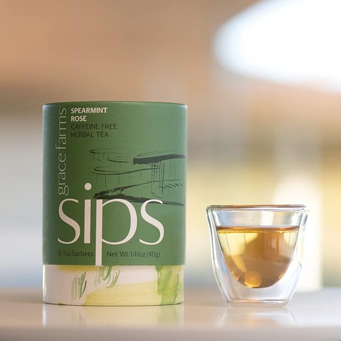 Grace Farms Organic SPEARMINT ROSE Herbal Tea (16 Pyramid Sachets) | Naturally Sweet, Stress Relieving and Caffeine Free | Organic, Fair Trade and Kosher Certified | Delicious Iced Tea | Gives Back 100% of Profits