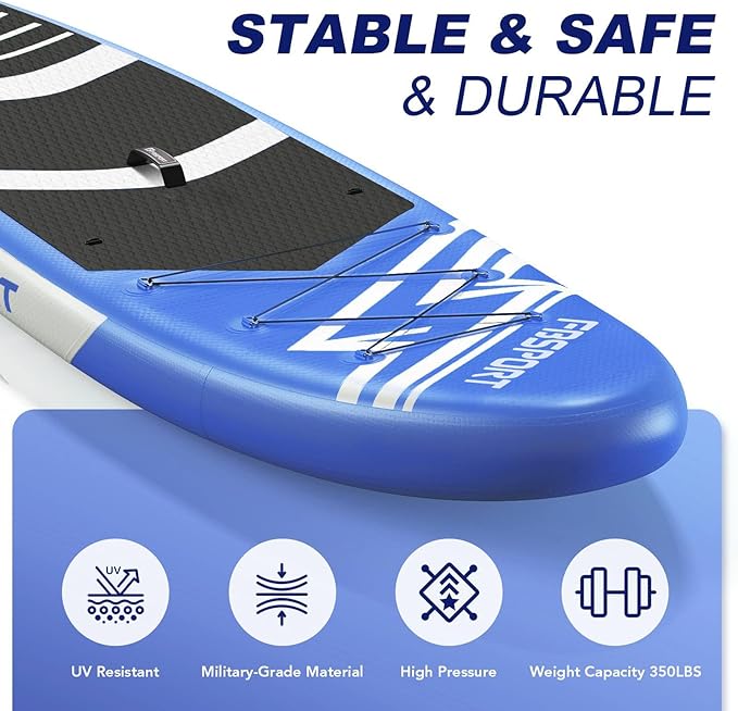 • VERSATILE PORTABLE STAND UP PADDLE BOARD - Quickly inflates or deflates for easy storage - packing down to the carrying bag.FBSPORT pandle board can be used in different water including sea,lakes, rivers or small wavy ocean. And the inflatable sup boards is great for fishing, surfing, paddling, cruising, yoga, sightseeing in water.