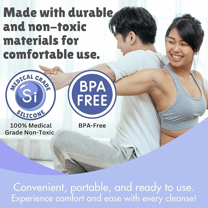 • SAFE AND GENTLE CLEANSING: Find peace of mind with our colonic cleanse kit equipped with a 2-liter premium happy bum bag, made from 100% medical-grade non-toxic silicone and BPA-free. No harsh chemicals —just gentle, soothing relief. With a 2-meter (6.5ft) connection hose and 3 Replacement Tips, including 2 silicone soft entry enema tips and 1 white colonic nozzle for a deeper clean.