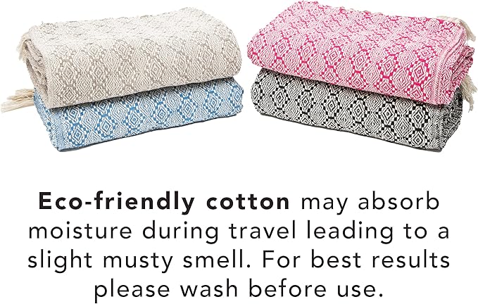 • ECO-FRIENDLY COTTON BLANKETS: Reclaimed eco-friendly cotton is used to make a sustainable cotton blanket throw that you can feel good about while you keep warm. As natural reclaimed cotton blankets may absorb moisture during transit, there may be a slight musty odor when you first open the case. Please wash blankets before use.