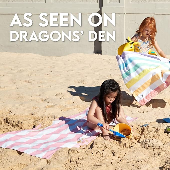 • SAND FREE BEACH TOWEL - The ultimate beach companion that leaves the sand at the beach for castles. The high-quality material means all you need to do is give it a shake and all sand will simply fall off. First seen on BBC's Dragons' Den