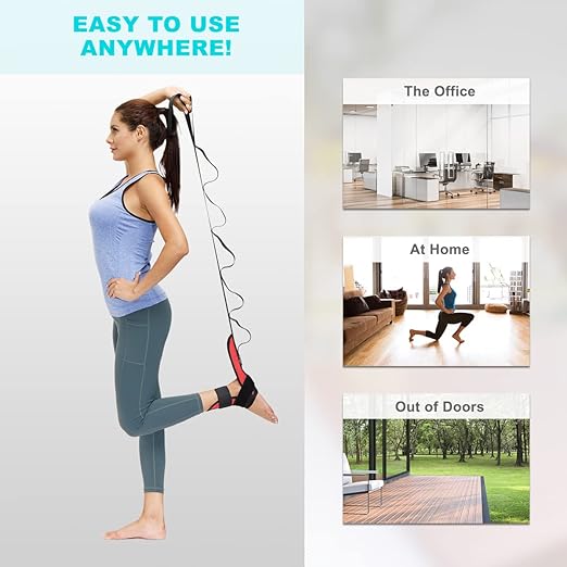 • Portable & user-friendly: It comes with a handy carrying pouch for the foot stretching aid. You can either take stretch strap to Gym and even workout or use it at office, at home, outdoor or during the long-distance journey wherever you go.