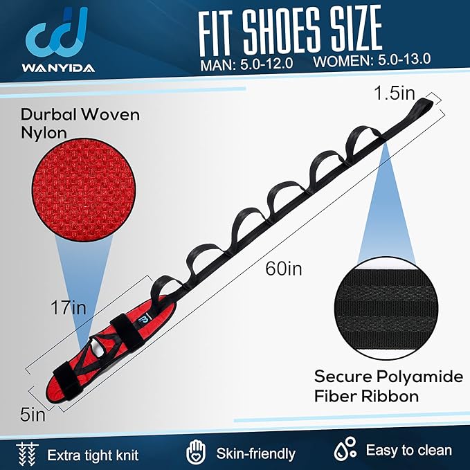 • Versatile & Easy-to-use: This stretching strap works by pulling your toes and expanding the tissue and muscles in the heel and arch area. Ideal for yoga practitioners, dancers, athletes, rehab patients. This leg and foot stretcher is fit for most adult shoe sizes range from 5 to 13 in women’s sizes and 5 to 12 in men’s sizes.