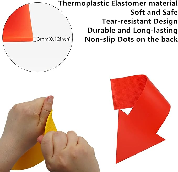 • These flat markers are made of high-quality Thermoplastic Elastomer (TPE) material. TPE material makes these spot marker has a tear-resistant design ensuring long life, soft and safe, durable and long-lasting, suitable for use on any indoor and outdoor surface.