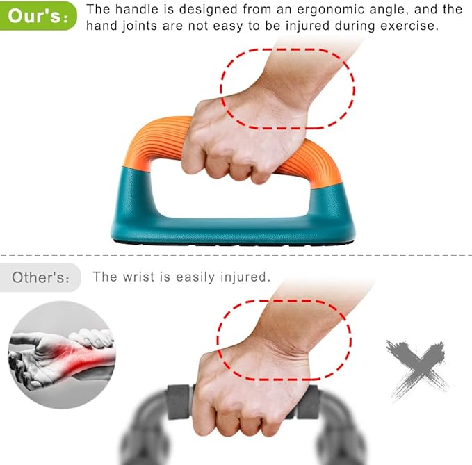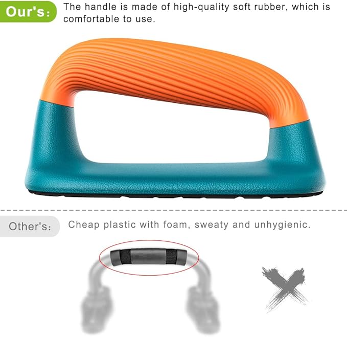 • ✅Comfortable Handle: The handles of push-ups are made of high-quality soft plastic, protect your hands, it’s not easy to get calluses. The diameter is 1 3/5 inch, and the grip is comfortable and ergonomic.
