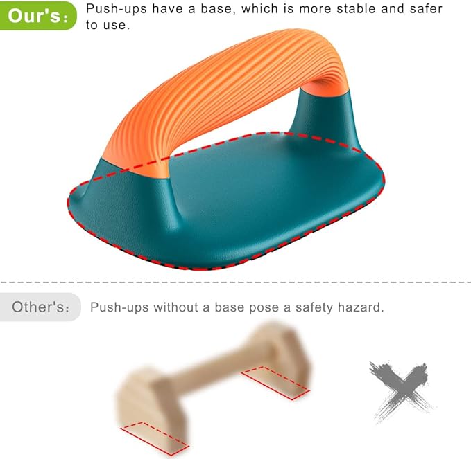 • ✅Non-Slip Rubber Pad: There is a 5*7 inch large area rubber pad at the bottom, which is super anti-slip. Ensure that the push-up bar remains stable on various floor types without sliding, and higher safety protects you from injury during exercise.