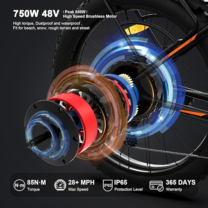 • 【750W Powerful Brushless Motor】 750W (Peak 1000W) high-speed brushless motor provides e-bike max speed up to 28 mph. 26"x4" wearproof fat tires fit for multiple terrains, excellent grip and skid resistance. 85N·M of torque, precise and sensitive SHIMANO-7 speed shift gear, suitable for riding on beach, snow, rough terrain and street.