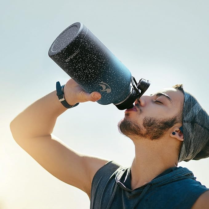 • 【Grand as the Galaxy】This 64 oz insulated water bottle has a unique matte finish, gradient powder coat, ice speckles and laser engraved logo that's sensory on the look and touch. It won't sweat or slip from wet palms, the large 64 oz capacity will keep you hydrated for a whole day without a refill.