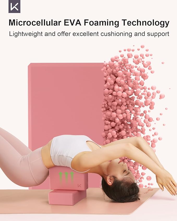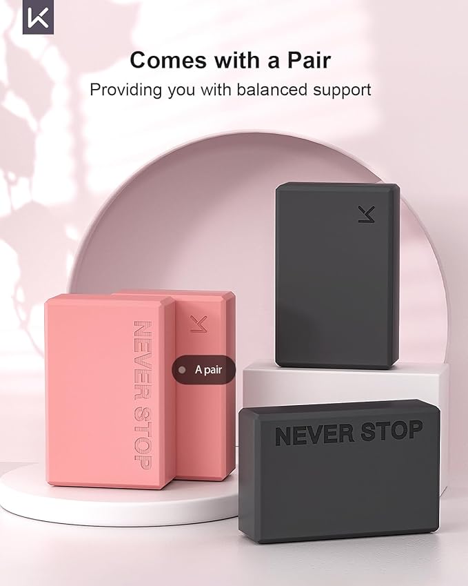KEEP Yoga Block, High-Density EVA Foam 2 Pack Yoga Block with Non-Slip Textured Surface, Supportive, Lightweight - Ideal for Yoga, Pilates, and Stretching Exercises
