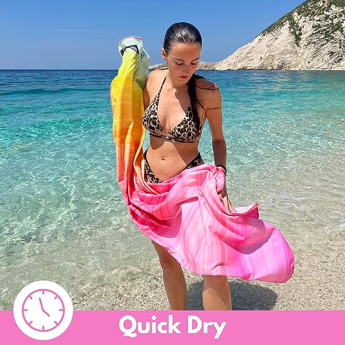 • Own the beach with our stunning 2 sided prints. Microfiber is a thin, ultra absorbent material. Super convenient to pack and carry. Maximize space in your luggage and closet with these compact and lightweight travel towels