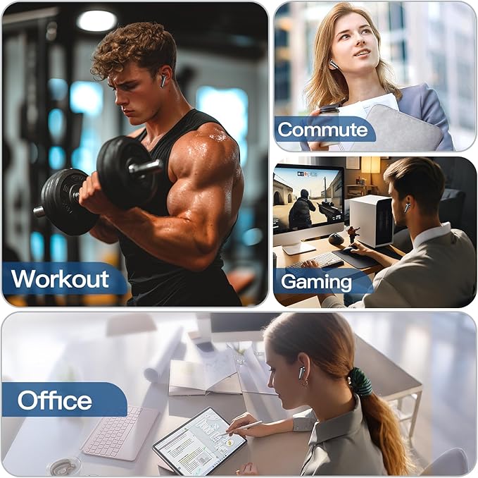 • Bluetooth 5.4 Technology : The wireless earbuds use the bluetooth 5.4 chipset. There is a faster and more stable signal transmission and has successfully achieved low latency without interruption. With a range of up to 33ft, whether you are at home, in the office, or on the road, you don't have to worry about disconnection of the bluetooth earbuds. Automatic pairing & compatible with multiple devices