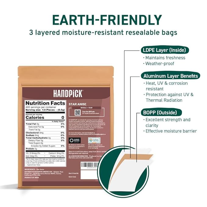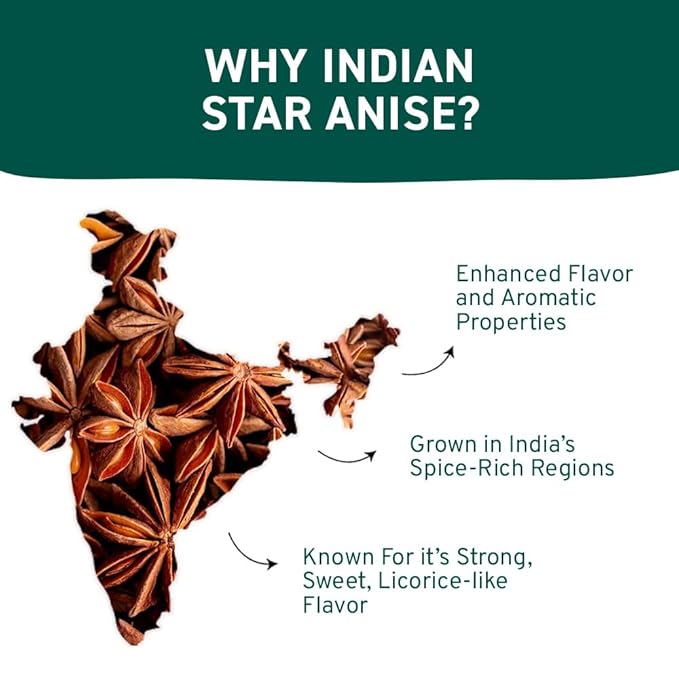 • NUTRITIOUS & VERSATILE- Star Anise can be used in whole or ground form to add an aromatic licorice flavor to recipes and is commonly used in its whole form to flavor teas, marinades, soups, brothsand other liquids. A versatile spice that does not just add flavor but also nutrition to your daily regime.