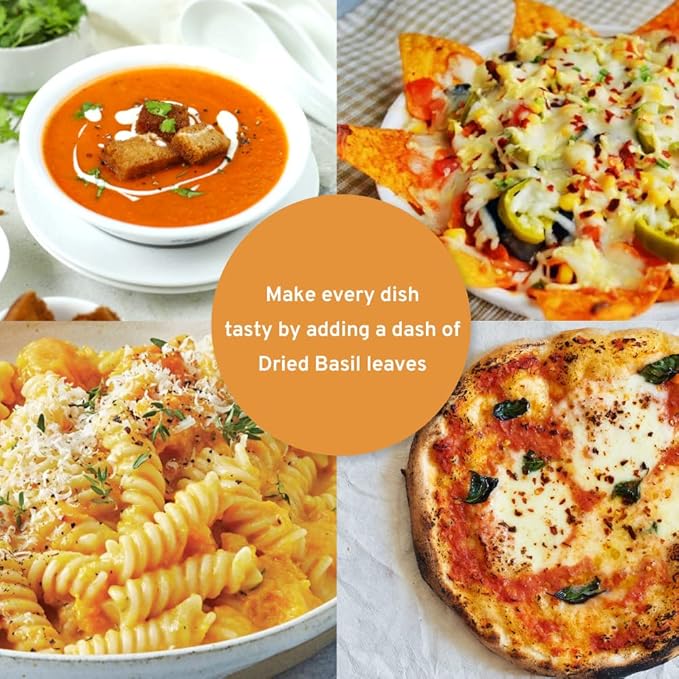 • NUTRITIOUS & VERSATILE- Dried Basil Leaves (Tulsi Whole Leaf) can be brewed as a tea, or used as a spice. It not just adds compliments to dishes like pastas, meats, soups, vegetables, sauces but also brings nutritional value along with it.
