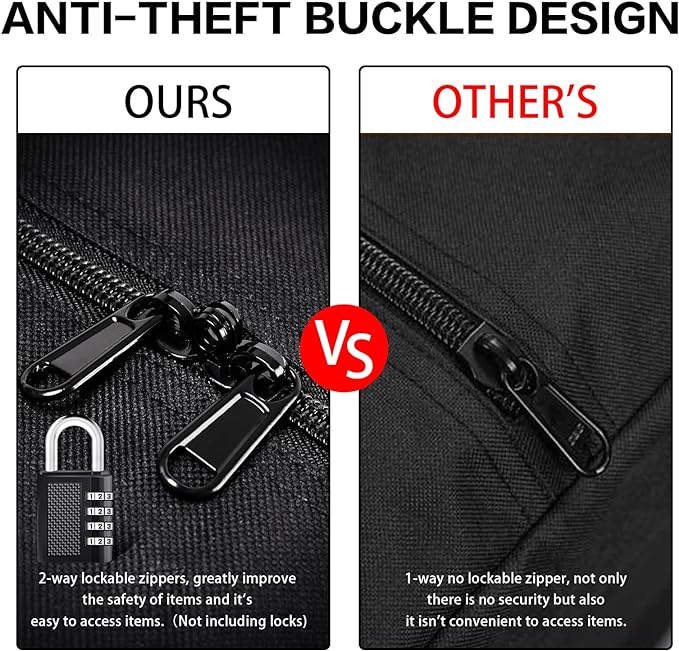 • DOUBLE ZIPPER: The main compartment of the travel bag is equipped with a double-ended zipper for easy use. High-quality zippers stay smooth even with long-term use. The two zippers can be locked with a lock to ensure the safety of items.