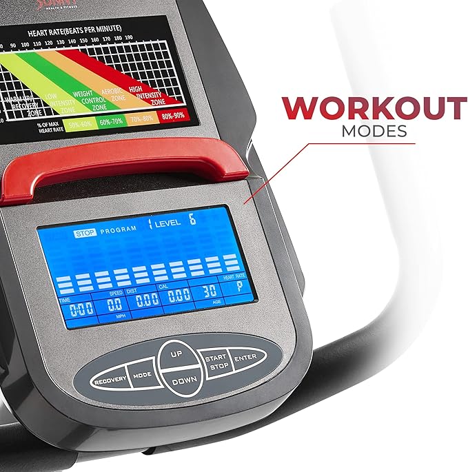 • 【 24 PRE-BUILT WORKOUT PROGRAMS 】 Choose from a variety of pre-programmed workouts for different fitness levels, including BMI calculation, target heart rate, and wattage tracking, for a comprehensive cardio machine experience.