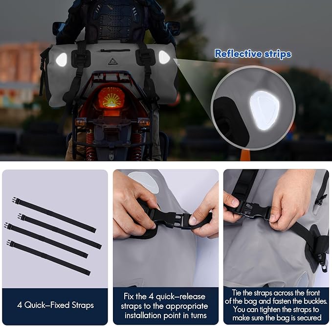 • Easy to Use and Quick Install: The dry duffel bag is equipped with four quick release straps, you can fasten the duffle bag anywhere, it is convenient to fasten on motorcycles, boats, kayaks and bikes, easy to clean and wipe, and instantly bright