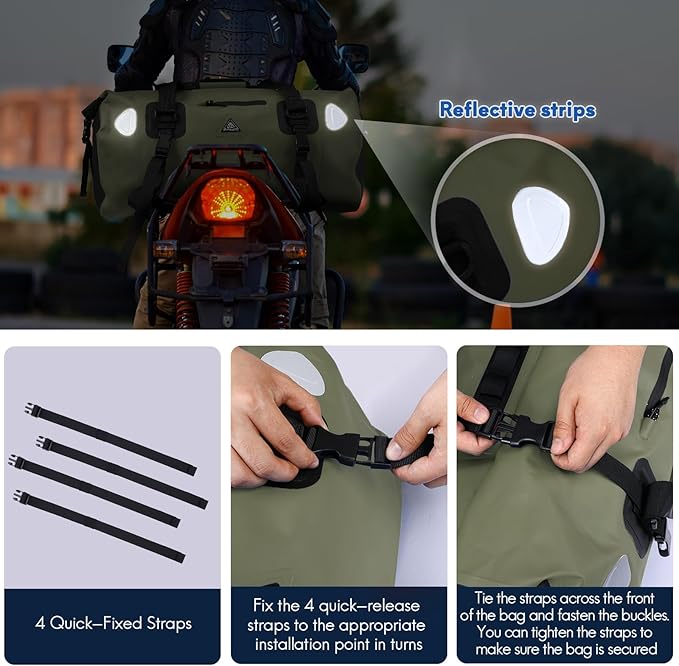 • Easy to Use and Quick Install: The dry duffel bag is equipped with four quick release straps, you can fasten the duffle bag anywhere, it is convenient to fasten on motorcycles, boats, kayaks and bikes, easy to clean and wipe, and instantly bright