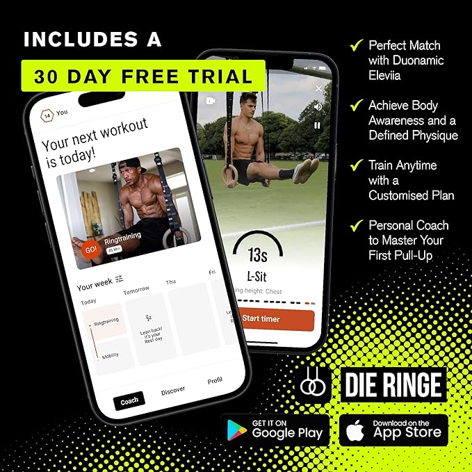 • UNLOCK MORE WORKOUTS: Upgrade your Eleviia with the Duonamic Rings attachment and unlock new exercises like push ups, dips, rows, muscle ups, and ring pull ups to target your core, chest, back, triceps and more.