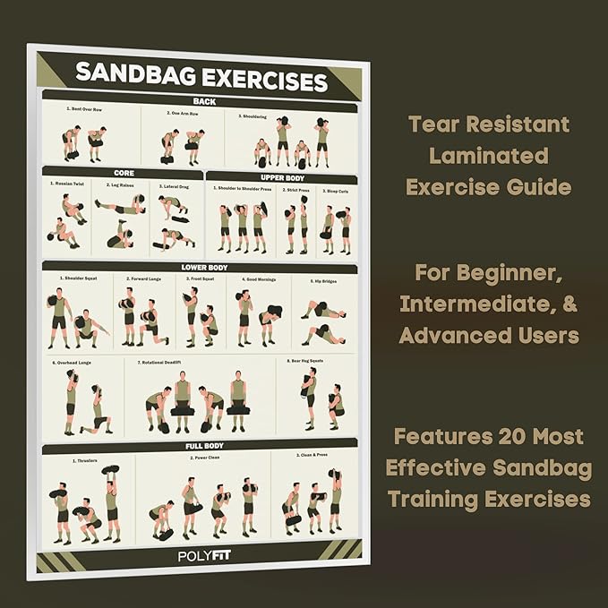 • 【LAMINATED SANDBAG EXERCISE GUIDE】A training sandbag is the best choice for anyone looking to change up their exercise routine. We've included a laminated sandbag exercise guide to help you get started. Complete beginners need not worry, plus we've added in some ideas for intermediate and advanced sandbag users.