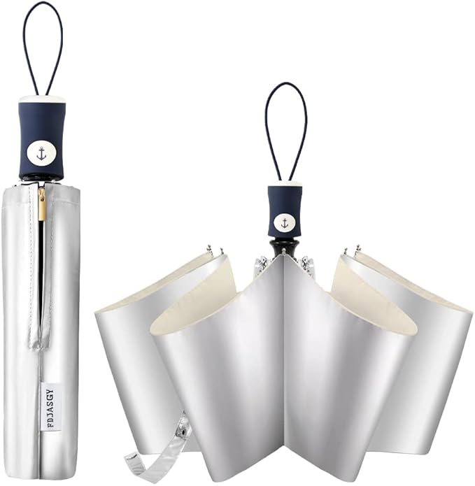 FDJASGY Silver Coating Layer Fabric Blocking UV 99.9% Sun Umbrella Compact Folding Travel Umbrella Automatic Folding Windproof Umbrellas For Men and Women (Beige)