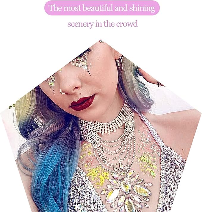 • 【Laser Flash Powder】This body glitter is made of holographic glitter, which is light and durable. The Color and luster of the laser sequins vary with the angle of view. Make you stand out from the crowd.