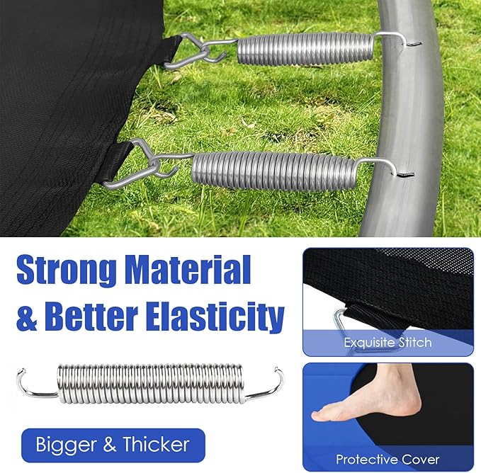 • Safety Protection for Safe Play: Our trampolines meet the ASTM F381-16 and ASTM F2225-15 standards, which ensure the safest and most comfortable delighted time for you and your children. In addition, All springs are covered with protective padded mat, which eliminates the gap to protect kids from scratches and injuries.