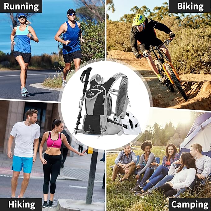 • 🚴‍【Extensive Applications】This hydration pack is Perfect sports gear you hydrated while running, marathon, cycling, hiking, skiing, climbing, race and training or any adventure outdoors. And it has a helmet organizer pocket Carry trekking poles on both sides for your need. A decent Holiday Gift for families and friends who love outdoor sports. especially yourself! IX INOXTO hydration backpack is always be there for you.