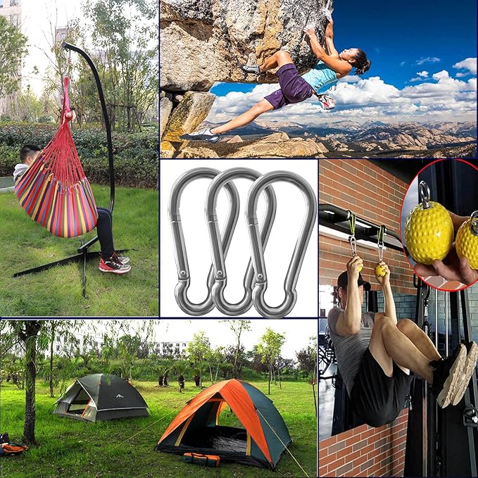 • WIDE USED IN HOME DIY PROJECT OR OUTDOOR: Heavy Duty Spring snap hooks perfect for hammock, fitness,swing set, gym, hiking, camping, indoor outdoor equipment gear; Also connecting items to a belt and any outdoor use versatile binding, rigging and anchoring hardware