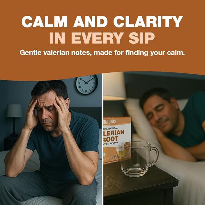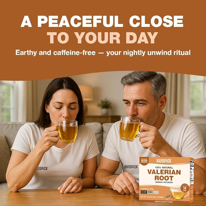 HANDPICK, Valerian Root Tea Bags (Valeriana) 50 Count | Non-GMO, Caffeine Free, Real Ingredients | Earthy/Woody Herbal Tea Bags | Round Eco-conscious Teabags