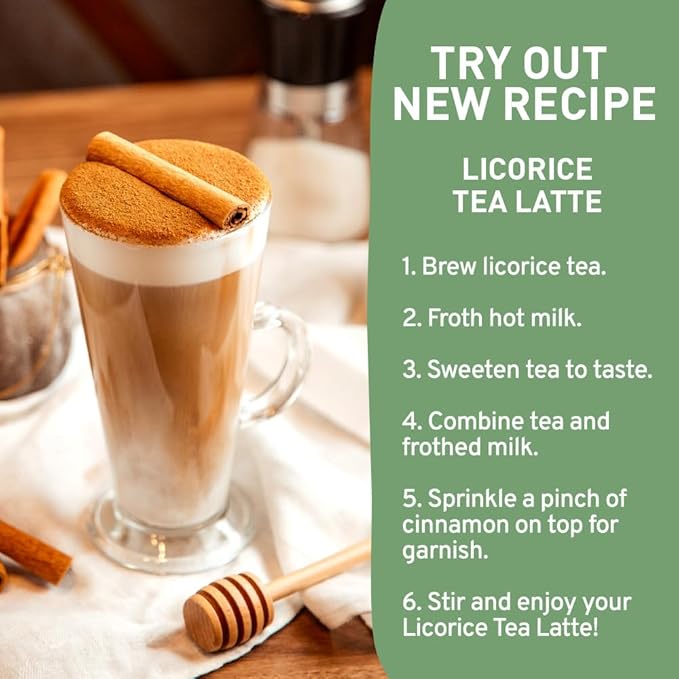 • PURE & CAFFEINE-FREE - Embrace the goodness of our Licorice tea, where each tea bag holds the essence of high-quality herbs and tea leaves. Take a moment to enjoy the refreshing flavors, knowing that you are savoring a cup of tea that is free from any unwanted additives. Allow this pure and caffeine-free indulgence to invigorate your senses and well-being.