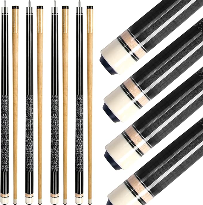 • Canadian Maple Wood:Firm and durable, we have chosen the best quality for the pool stick and the pool cue tips durability. Each pool cue case contains 4 unique pool cues sticks