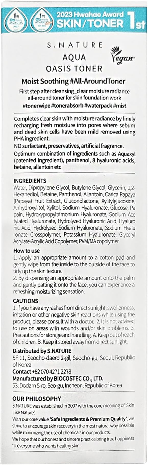 Aqua Oasis Toner | PHA, Soothing and Calming Skin,Hydrating, Refreshing Toner for All Skin Types, Korean Skin Care, Vegan | 300ml, 10.14 Fl Oz