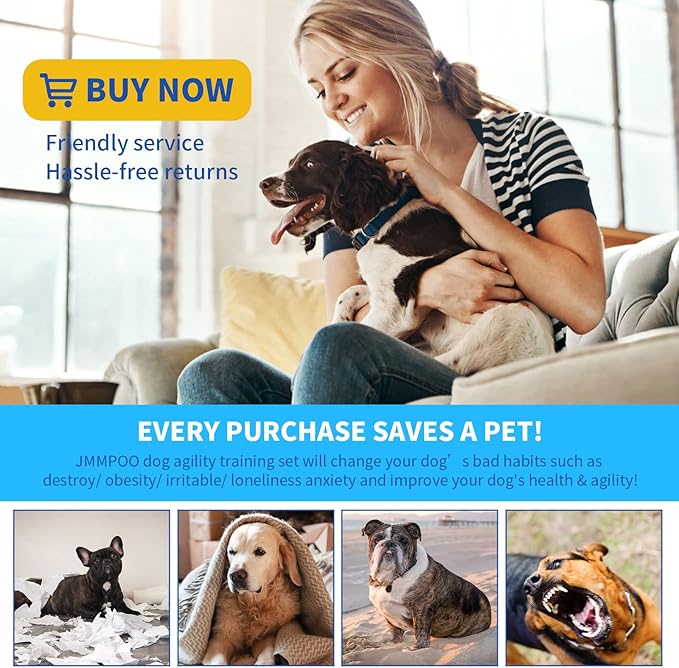 • UNIQUE DOG AGILITY EQUIPMENT KIT: JMMPOO PET backyard obstacle course set gives you more options to build trust with your dogs and keep them healthy by exercising. Whether it is training for competition or just for fun, you should own this agility training equipment for dogs!