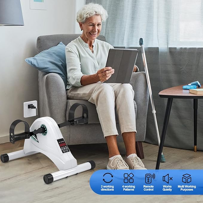 • 👍ERGONOMIC DESIGN & MULTIPLE OPTIONS - This mini electric exercise bike offers multiple options to meet your needs: motorized or manual assisted pedaling, forward and backward. It features ergonomic adjustable pedals, which allow its use both for feet and hands