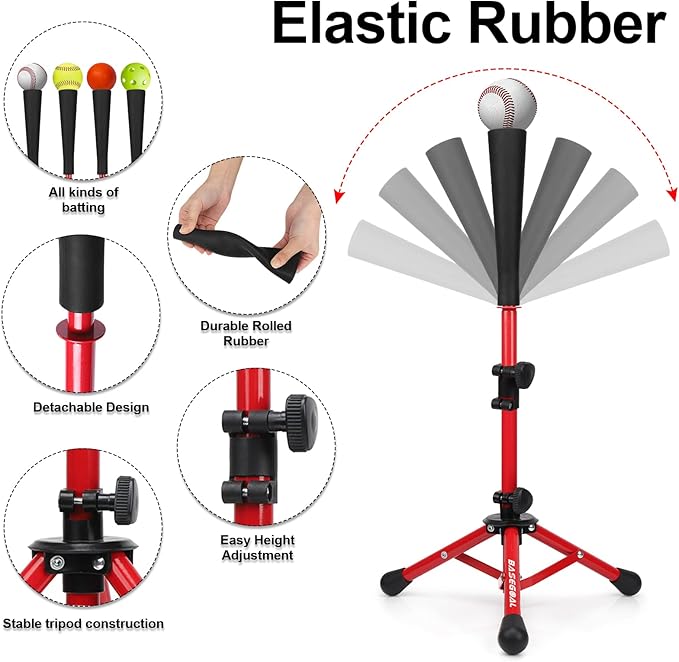 • 3.【DURABLE-HIGH QUALITY WRAPPED RUBBER】Youth Hitting Tee,Every BaseGoal Tee top is hand rolled,Strong and durable,Which is suitable for kinds of balls, with good elasticity, like baseball, softball, training ball and to have the real hitting feelings with special size design.